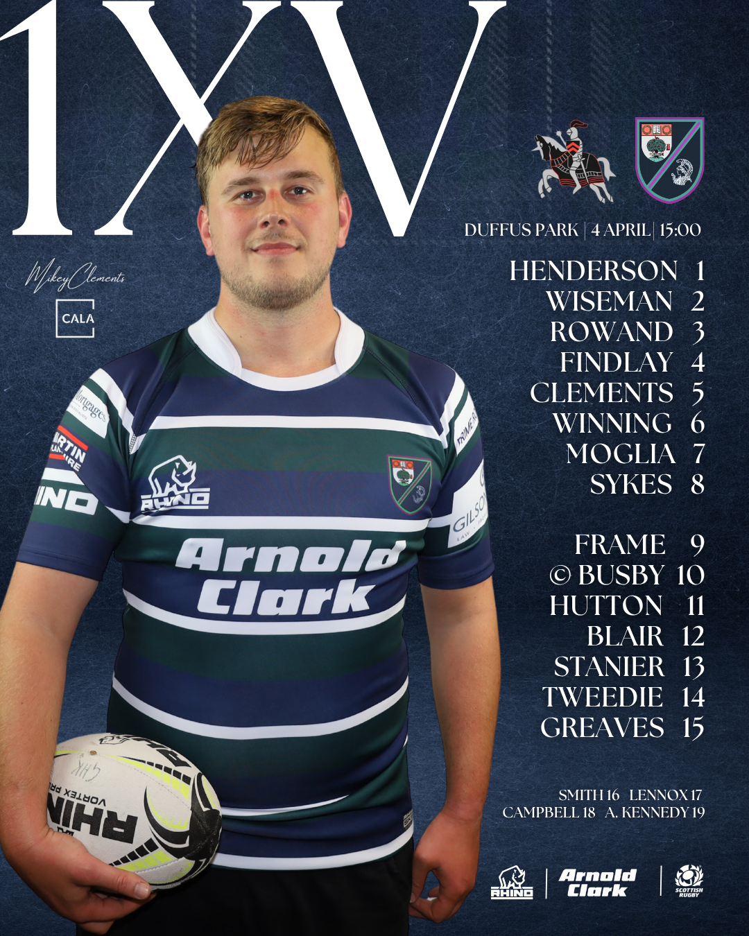 Team Announcement vs Howe of Fife 4th April